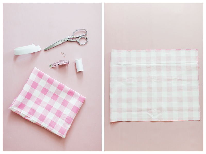 Fold the rectangle in half with the short sides together and the pretty side of the fabric on the inside. Then, sew the short side together (I used a 1/4 inch seam allowance).