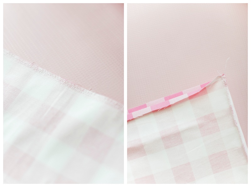 If you have a serger you can serge the ends so they don’t fray. My sewing machine has a stitch I like to use that’s similar to serging, so I used that. If you don’t have a fancy stitch like the one I used, you can just use a zig zag stitch and that works perfectly! Sew down the short end with the zig zag stitch.