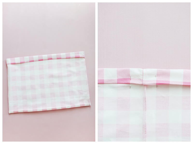 When you’re ready to stitch the top of your skirt, make sure to leave a 1 inch opening so you can put your elastic through. You can mark where you needed to stop with a pin in case you forget. The photo above on the right shows where I started sewing (right pin) and went all the way around and stopped where the pin on the left is.
